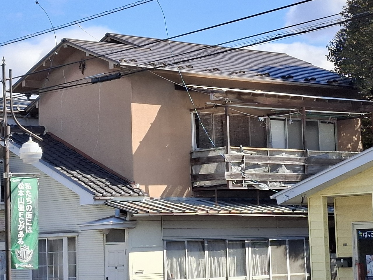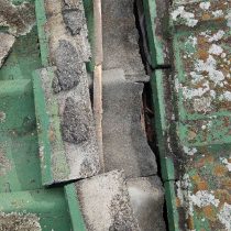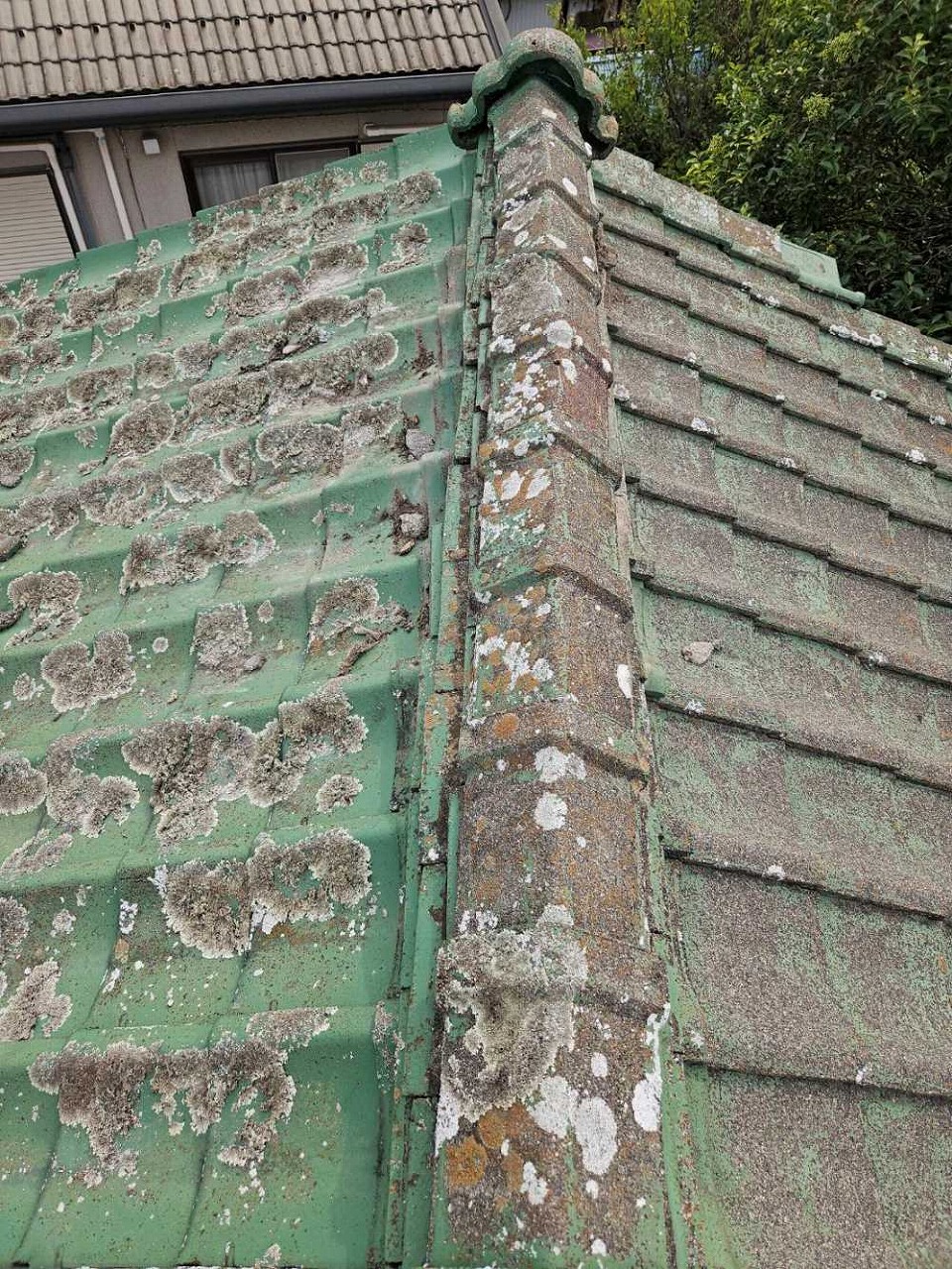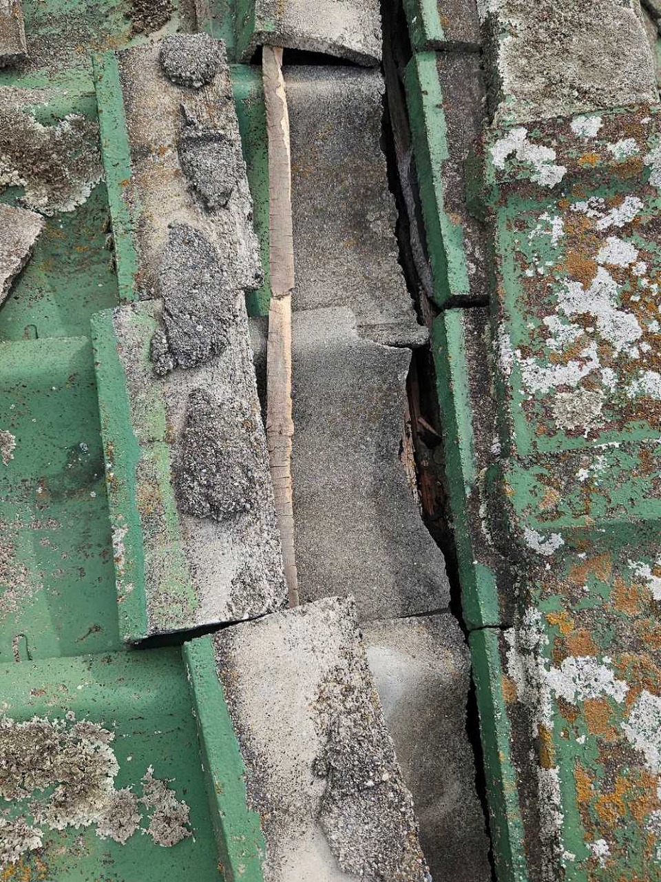 - 屋根にのぼり点検しましたが、セメント瓦が劣化しており棟瓦のずれがあり屋根塗装では対応できないため、耐震性能の向上もあるので軽いカラー鉄板に葺き替えるよう提案しました。