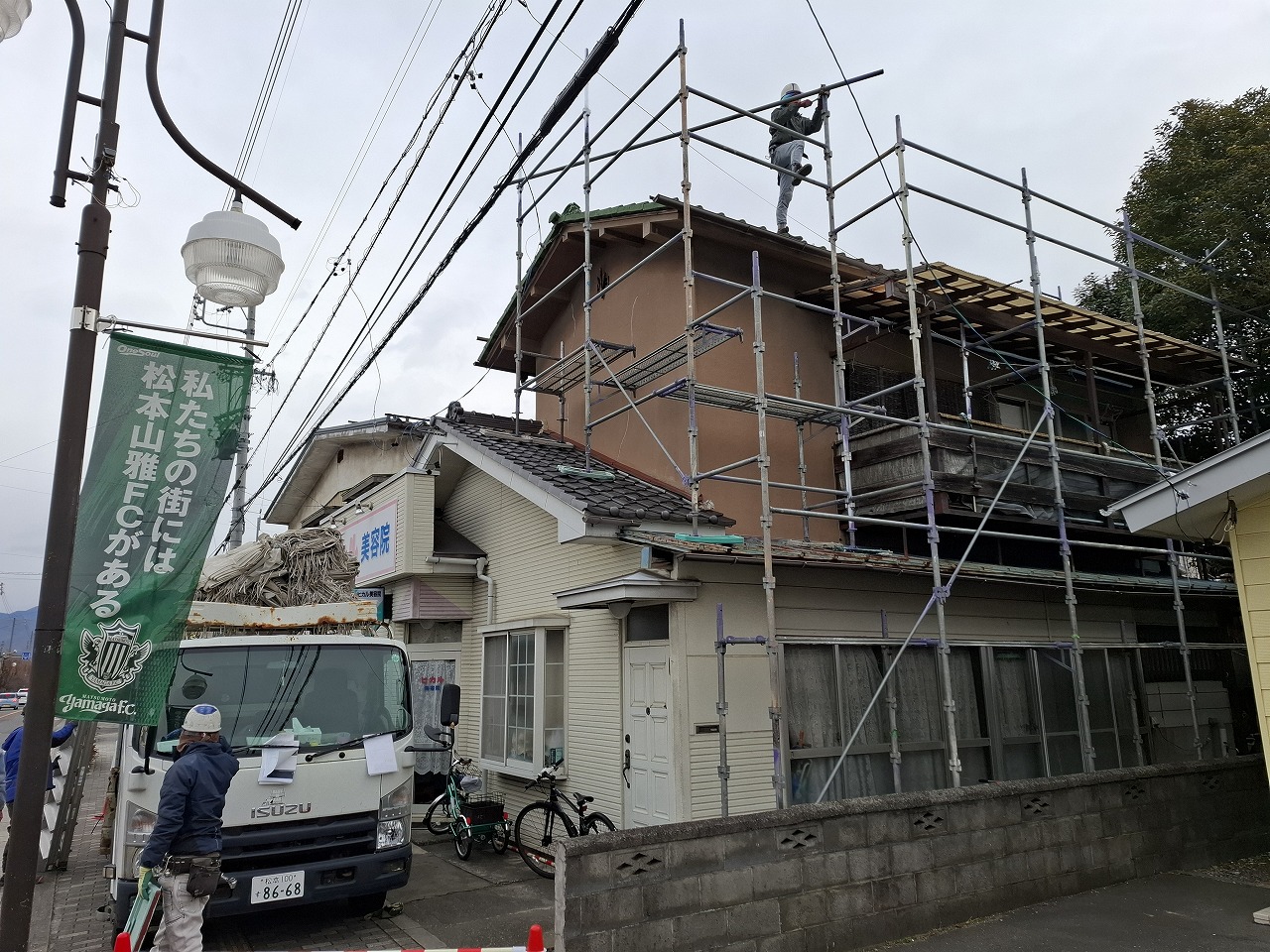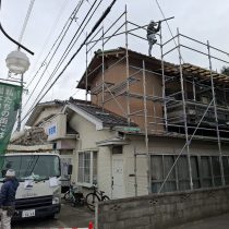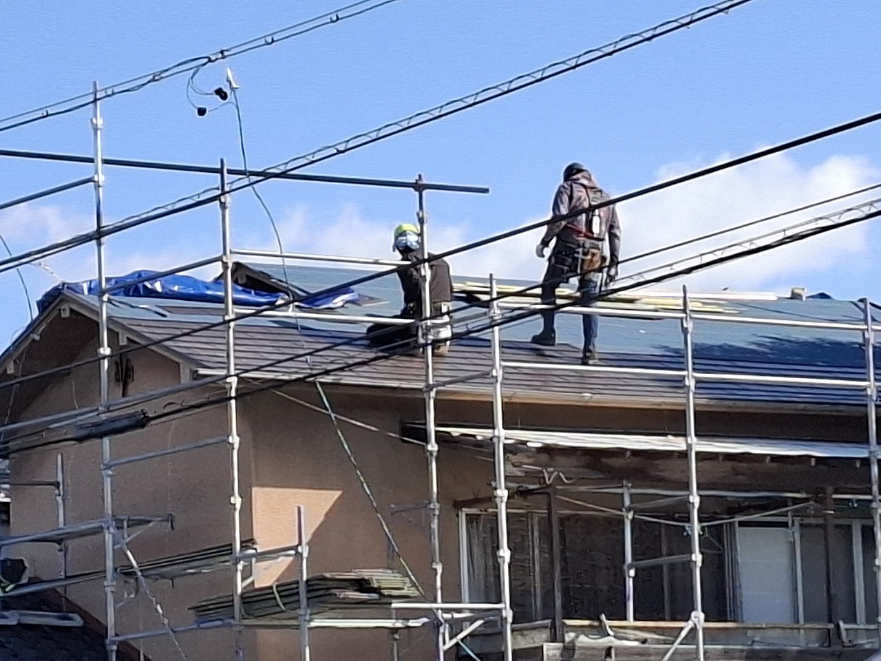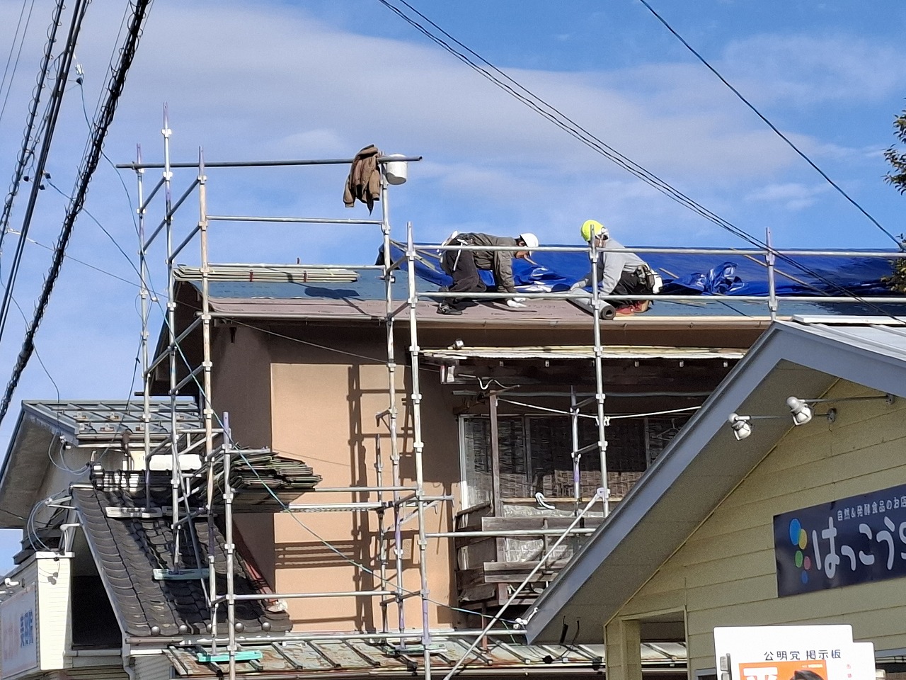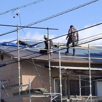 - 既存のセメント瓦を撤去してガリバリウム鋼鈑屋根に葺き替える工事です。